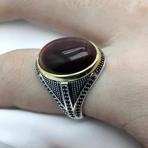 Bague Oeil de Taureau - Argent et Oeil de Tigre Rouge