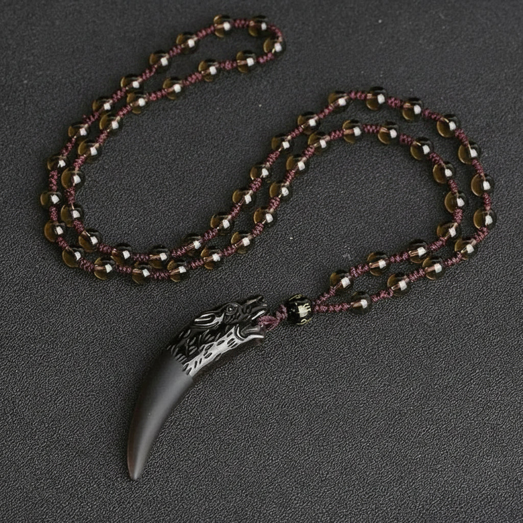Tout comme son cousin le pendentif en dent de tigre, ce pendentif homme dent de loup est un choix idéal pour ceux qui recherchent un bijou puissant, distinctif et réalisé en pierres naturelles. Entre la noblesse de l’obsidienne de glace et le caractère des perles naturelles, il offre un style aussi sobre qu’imposant, parfaitement adapté aux hommes qui veulent afficher un accessoire avec du sens et de la présence.