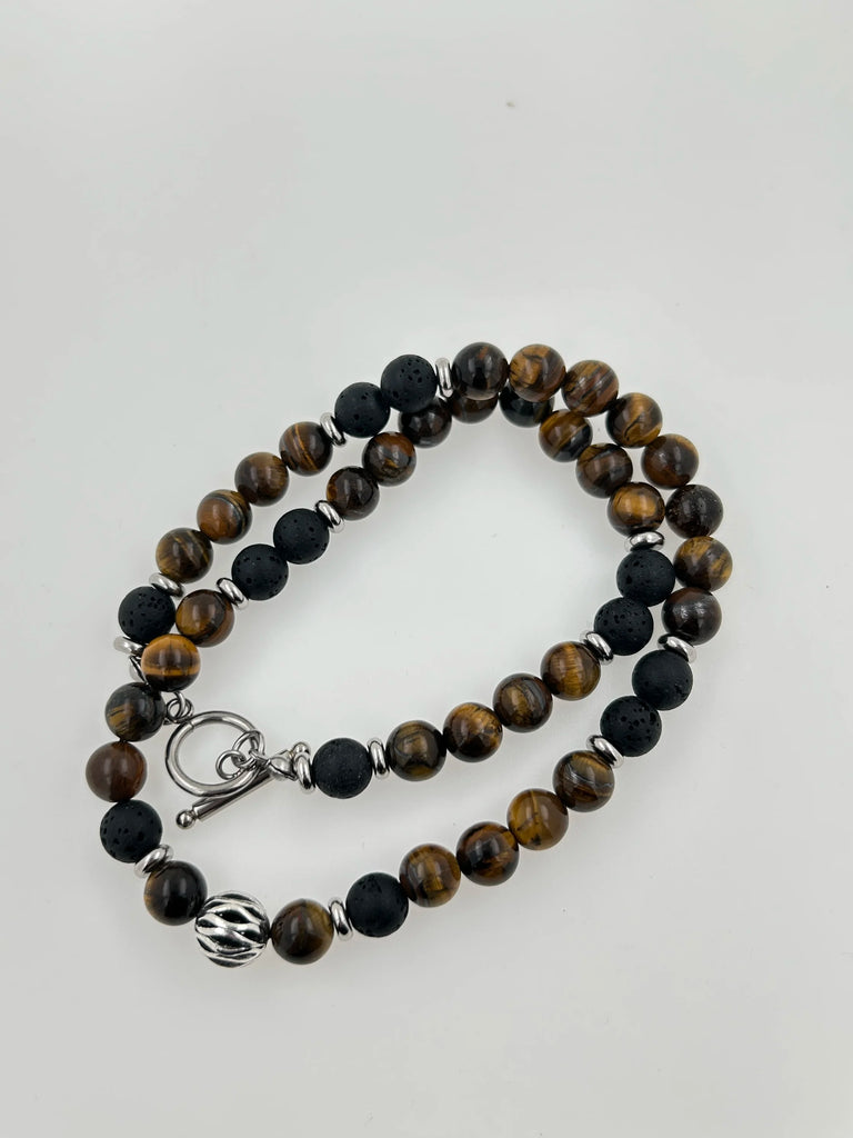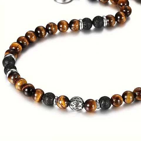 • Perles naturelles œil de tigre et pierre de lave 8 mm