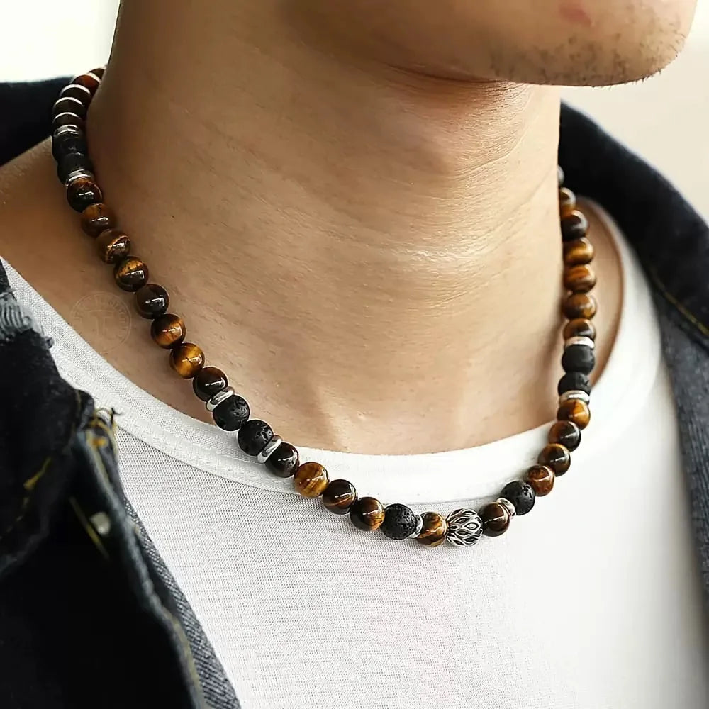Le Collier Perle Homme Luxe est pensé pour les hommes qui recherchent un bijou à la fois élégant, puissant et intemporel. Conçu autour d’un duo de pierres naturelles très appréciées – l’Oeil de Tigre et la Pierre de Lave – ce collier combine style affirmé et allure premium, sans en faire trop. Il s’adresse à ceux qui veulent un accessoire masculin visible, structuré, et capable de s’intégrer aussi bien dans une tenue habillée que dans un look plus décontracté.